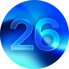 本页收集了 Apple 设备支持的操作系统信息,图标底部有渐变光晕效果表示该款设备支持 Apple Intelligence。